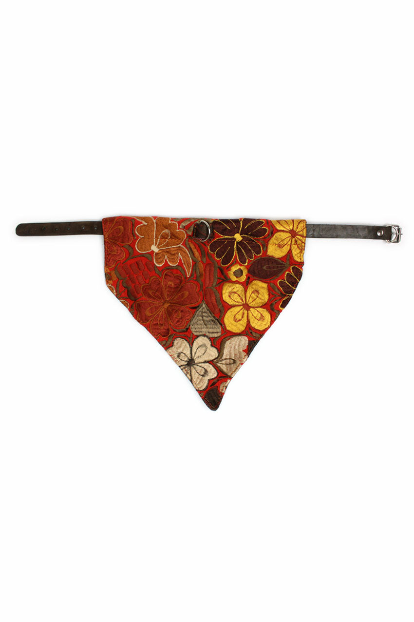 Pañuelo con bordado en tonos marrón y amarillo