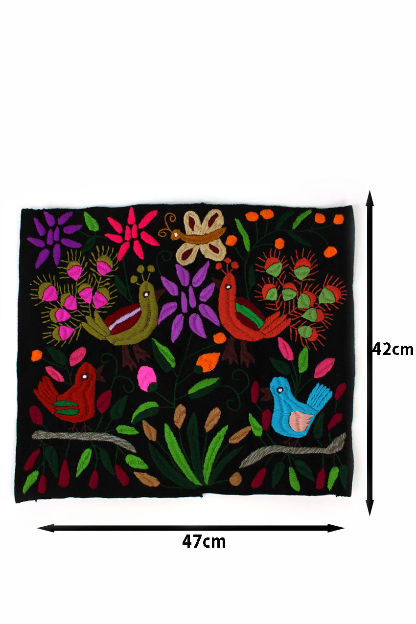 Cojín negro con pájaros